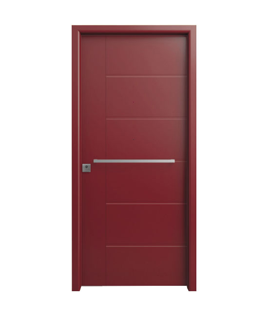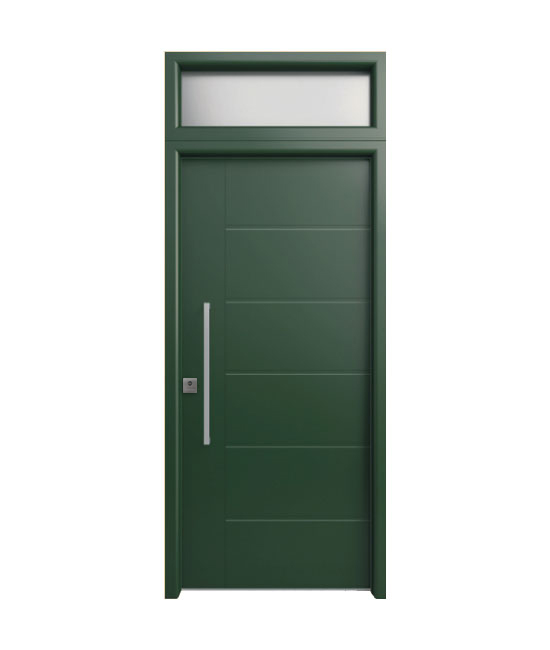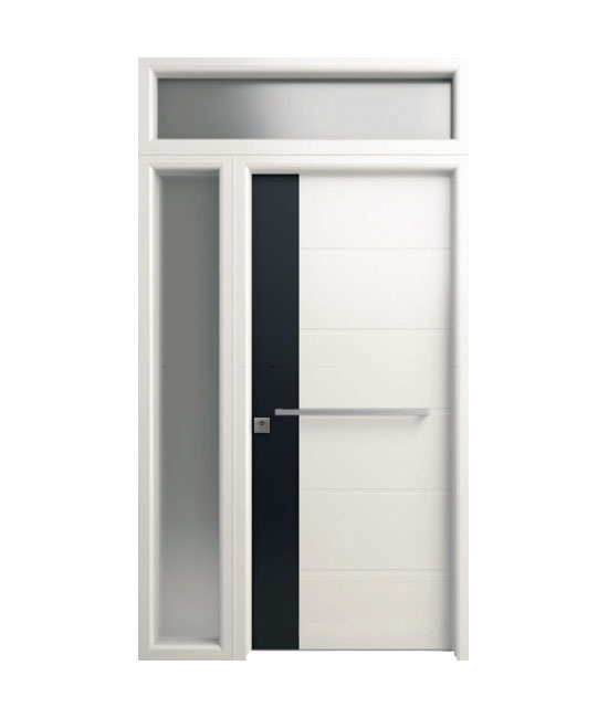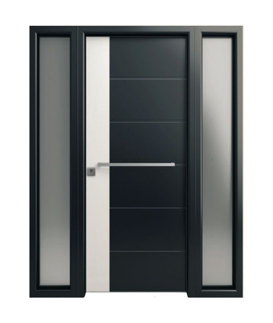 Puerta de seguridad en aluminio, Modelo 201. Tirador inox PHT-600. Lacado ral. 7016 mate, especial para su exposición a la intemperie.