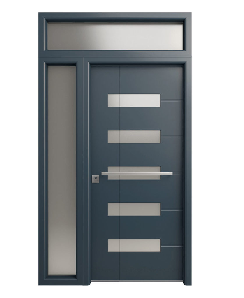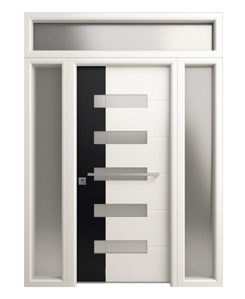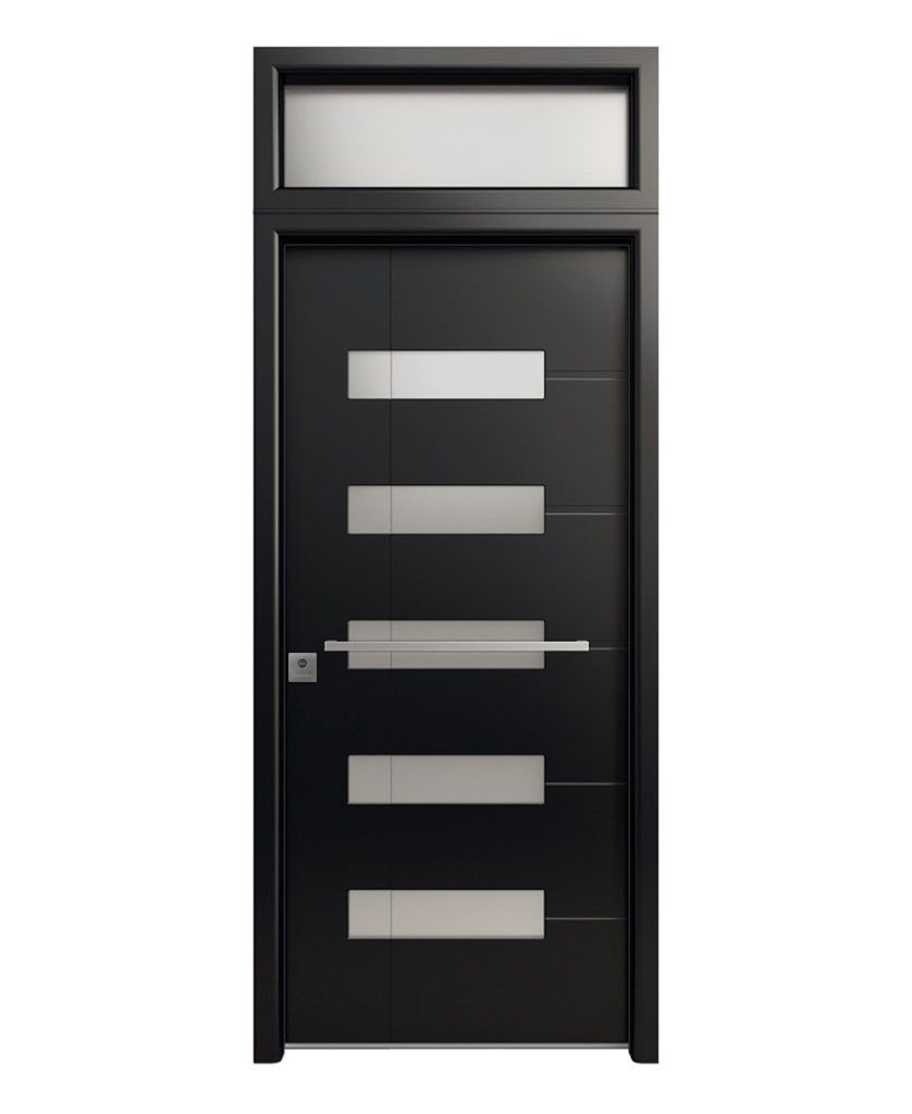 2 Puertas de seguridad en aluminio, Modelo 206 con cristal de seguridad. Tirador inox HPT-600. Lacada en negro mate, especial para su exposición a la intemperie.